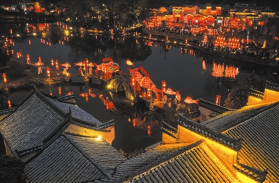 近日,安徽省黄山市徽州区呈坎古村落迎来入冬首场降雪,鳞次栉比的徽派民居银装素裹,鱼灯队伍舞动巡游,光影流动,与皑皑白雪交相辉映,宛若雪夜浪漫梦境。
