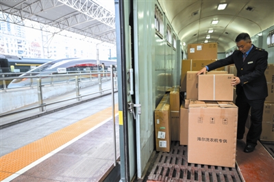 尤廷金今年56岁,2008年就开始从事列车行李员工作。“从前跑广州时,每到春运时候行李车总是满满当当,现在那趟车的行李车都已经取消了”。他目光扫过车厢内排列整齐的货品,语气平静。过去沉甸甸的土特产和衣物逐渐被电商货品、高价值电子产品乃至易碎品取代,宠物托运业务也已出现——人们生活方式与消费习惯的转型,也对行李员的工作提出了更高要求。
