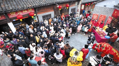 2月7日,六安市毛坦厂镇迎来了第三届老街文化年货节。舞狮队沿湿漉青石板踏鼓而行,金狮腾跃,引得游人层层簇拥。据悉,今年市集深度融合状元文化、教育传统与非遗民俗,打造出集逛、品、赏、互动于一体的文旅场景,让游客在喧腾的市井中重拾记忆里的年节滋味。