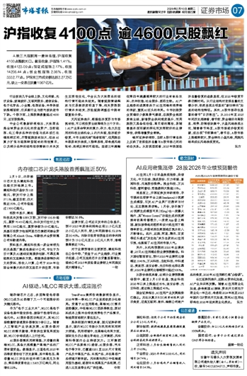 沪指收复4100点 逾4600只股飘红