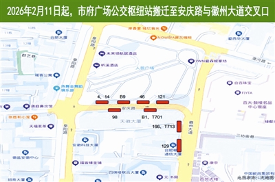 2026年2月9日,合肥公交集团正式发布公告:自2月11日起,服役近18年的市府广场公交枢纽站整体搬迁,同步调整4路、14路、46路、98路、117路、121路、129路、166路、B1路、B9路、T701路、T713路共12条公交线路走向与停靠站点。这不仅是合肥公交网络优化的关键一步,更标志着淮河路步行街西延、市府广场改造两大“十五五”重点工程进入实质施工阶段,合肥老城核心区更新迎来历史性节点。