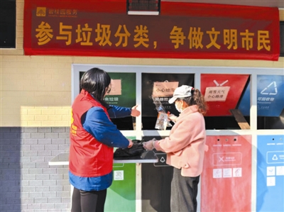 星报讯 “阿姨,废电池属于有害垃圾,要投进红色垃圾桶哦!”近日,在合肥市包河区滨湖世纪社区徽贵苑小区,工作人员正在耐心向居民讲解垃圾分类知识。连日来,该社区创新推出“七个起来”专项行动,即“宣传台摆起来、小喇叭响起来、横幅挂起来、标语贴起来、入户走起来、专栏开起来、志愿服务动起来”,推动垃圾分类知识走进千家万户。