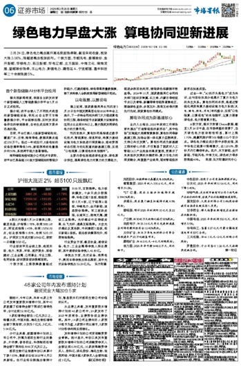绿色电力早盘大涨 算电协同迎新进展