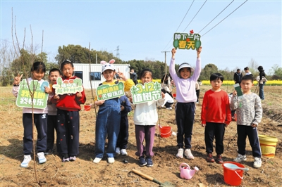 “我和小树共成长”“守护绿色守护家园”……一个个心愿牌承载了同学们对小树的美好祝愿,也寄托着他们对未来的期许。每一笔写画、每一句寄语,都是童心与春天最美的对话。