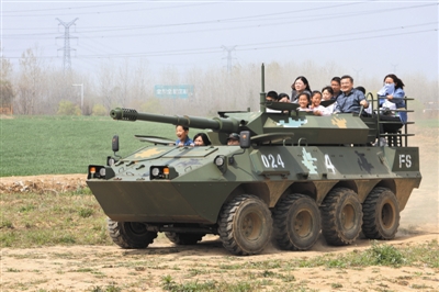 轮式坦克是现代陆军主要装备之一。此次亲子活动有一个特殊的内容——坦克乘坐体验。同学们在教官的带领和父母的陪同下登上作战坦克,配合车长指挥,体验真实的坦克行进场景,感受国防装备的魅力。