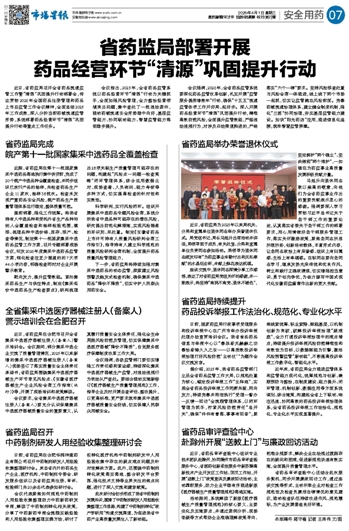 省药监局部署开展 药品经营环节“清源”巩固提升行动