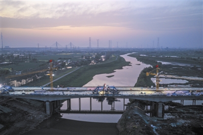 4月5日凌晨,由安徽建工建投集团承建的繁昌区G236项目二标段黄浒河特大桥顺利实现合龙。繁昌区G236项目二标段起点位于芜湖市繁昌区荻港镇大洞山,终点止于铜陵市义安区东联镇,路线全长约5.839公里,公路等级为双向四车道一级公路。黄浒河特大桥全长1123.5米,是全线控制性工程及最长特大桥。项目建成后,荻港镇至铜陵北站通行时间将由35分钟缩短至15分钟,对繁昌区融入长江经济带、对接长三角地区、提升区域协同发展能力具有重要意义。
