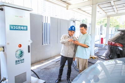 国网合肥供电公司全程深度参与车网互动规模化应用试点城市建设,积极配合政府部门出台反向放电补贴政策,成功探索出可复制、可推广的车网互动合肥模式,实现电网、企业、车主的三方共赢。4月7日,在合肥市政务中心新能源汽车充电站内,国网合肥供电公司工作人员协助市民徐先生使用V2G双向充放电桩,将新能源汽车电池中储存的电量平稳反向输送至电网,成功完成一次车网互动。