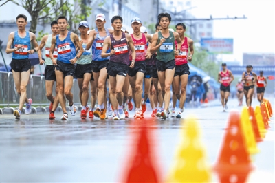 2026年4月11日,参赛运动员在竞走比赛中。当日,2026年全国竞走大奖赛暨全国竞走单项赛(第2站)在安徽省黄山市徽州区鸣枪开赛。来自全国21个省市247人报名参赛,展开速度与耐力的巅峰对决。