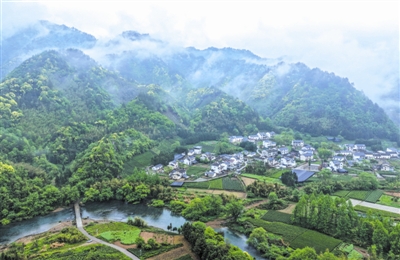 日前,一场春雨过后,安徽省黄山市黄山区谭家桥镇下芳村笼罩在蒙蒙烟雨之中。远山如黛,云雾如纱,层层茶园与徽派民居相映成趣,宛若一幅流动的水墨画卷,令人心旷神怡。