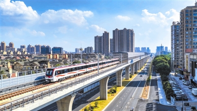 “来了,来了!”4月22日上午10时,随着一列轻轨车缓缓驶入马鞍山市慈湖高新区站,站台上等候的市民发出阵阵欢呼。国内首条跨省共建共管共运营的市域(郊)铁路——宁马市域(郊)铁路,正式开通初期运营。