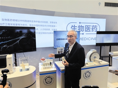 在合肥中科离子医学技术装备有限公司(以下简称“中科离子”)展厅里,公司董事长刘璐一边指着示意图,一边为记者讲解“质子刀”治疗癌症的原理。