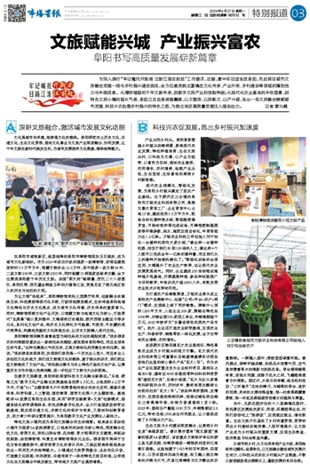 从城市到乡村,从文化传承到产业升级,阜阳始终牢记嘱托、奋勇争先,以文旅融合激活城市发展内生动力,以科技兴农夯实乡村振兴产业根基,不断以新面貌呈现出蒸蒸日上、蓬勃发展的良好态势。
